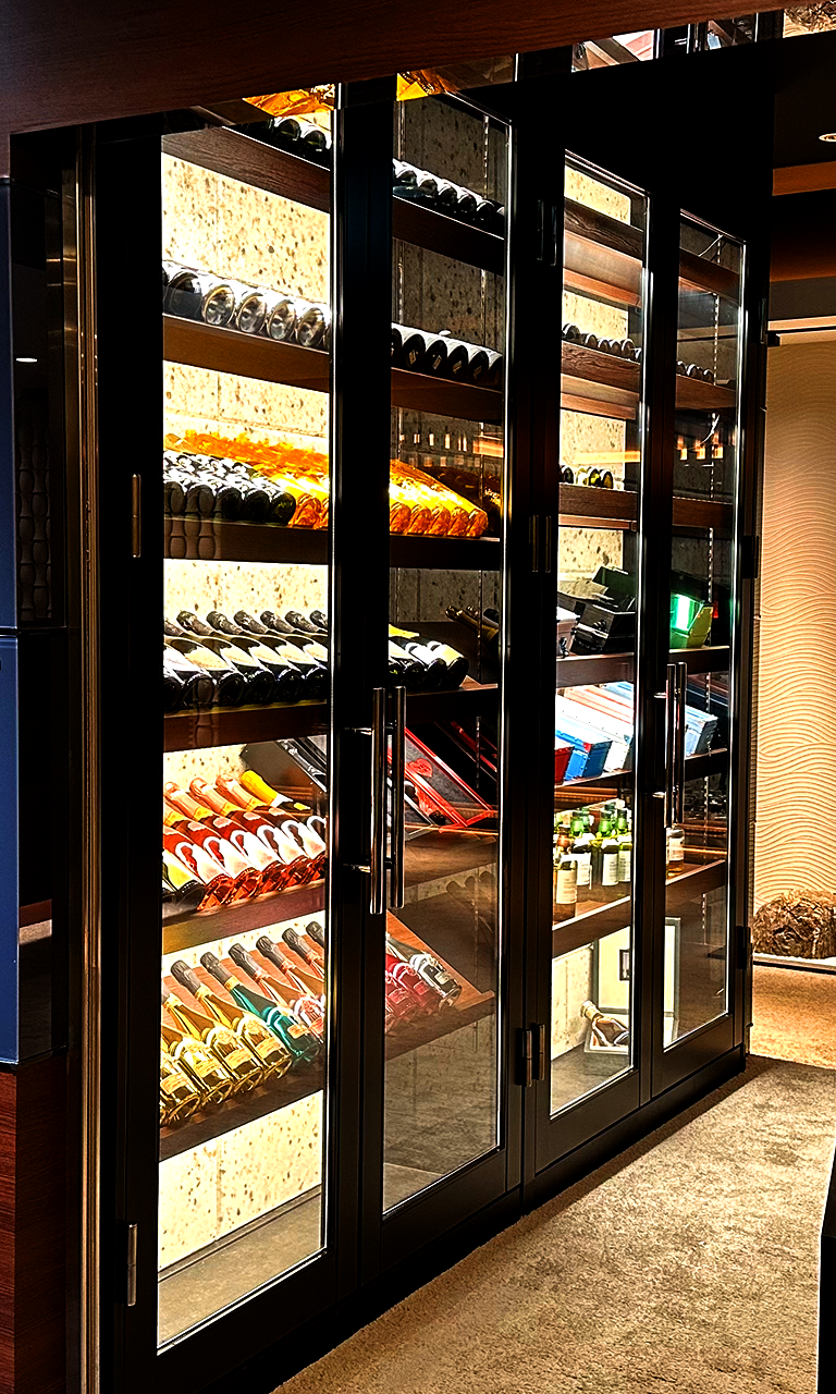 店内に入るとまず目に入るのが大きなシャンパンセラー。